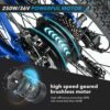 - 250W POWERFULL MOTOR: The Auswheel electric mountain bike is equipped with a 250W high-speed brushless motor, providing more than enough to power your daily commute, a cruise on the mountain, or a meander along your favourite trail. With speeds up to 25KM/H, you will reach your destination swiftly.