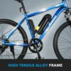 - HIGH-QUALITY MATERIALS: The e-bike adopts a 100% aluminium alloy frame. The front fork is made of high-strength carbon steel and packed with premium comfort shock absorption and has adjustable seat/handlebar angle/stem’s length set.