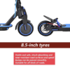 - 8.5inch solid honeycomb tires absorb shocks and provide comfort when riding on rough surfaces.