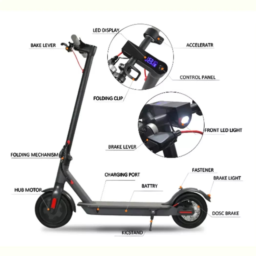 Our electric scooter combines functionality, safety, and style. The ergonomic handlebar ensures comfortable control, while the anti-slip deck enhances stability. The intelligent locking system, compatible with your smartphone, adds extra security. Whether navigating urban streets or taking it on trips, this scooter adapts to your lifestyle.