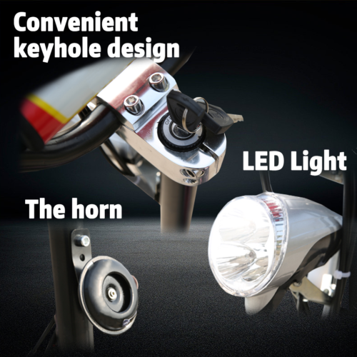 - Advanced Safety Features: Headlights, taillights, and brake flash warnings ensure night-time safety.
