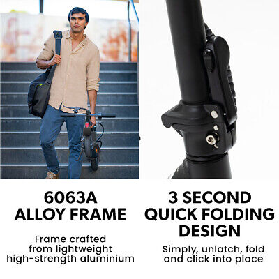 The large 8.5-inch tyres with internal honeycomb technology ensure a smooth ride, predictable handling and the benefit of never risking a puncture or requiring refilling with air!