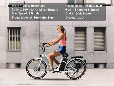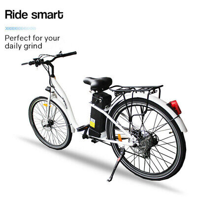 White Electric Bike Commuter Ebike 36V 250W 26 Inch Pedal Assist 10Ah Lithium